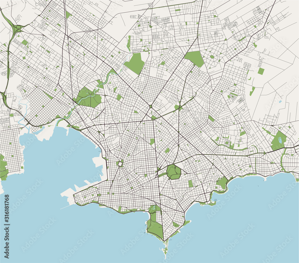 map of the city of Montevideo, Uruguay, South America Stock Vector