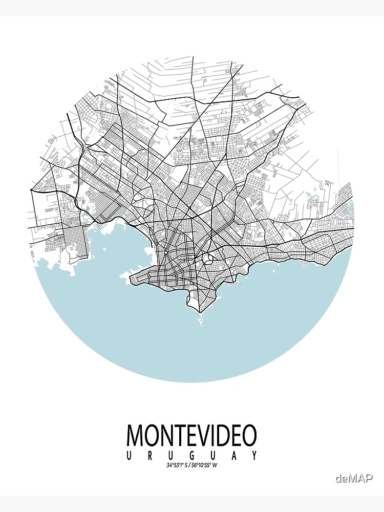 Montevideo, Uruguay City Map Circle” Canvas Print for Sale by