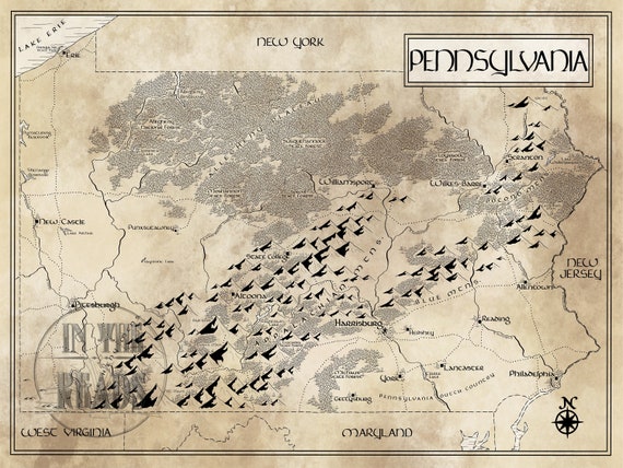 Pennsylvania Map / Tolkien Inspired / Free US Shipping Etsy