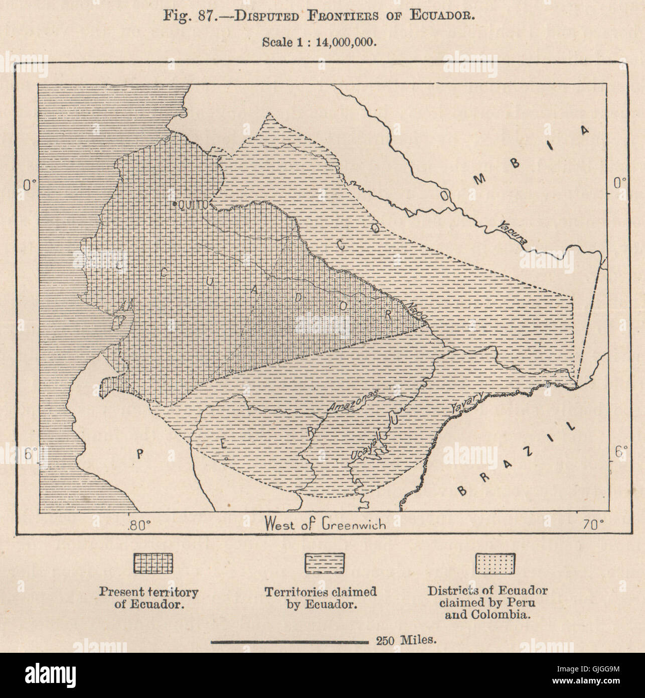 Disputed frontiers of Ecuador, 1885 antique map Stock Photo Alamy
