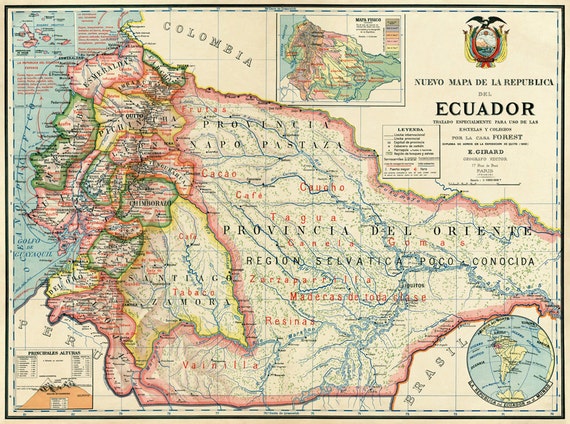 Ecuador Map Vintage Map Fine Print on Paper or Canvas Etsy Denmark